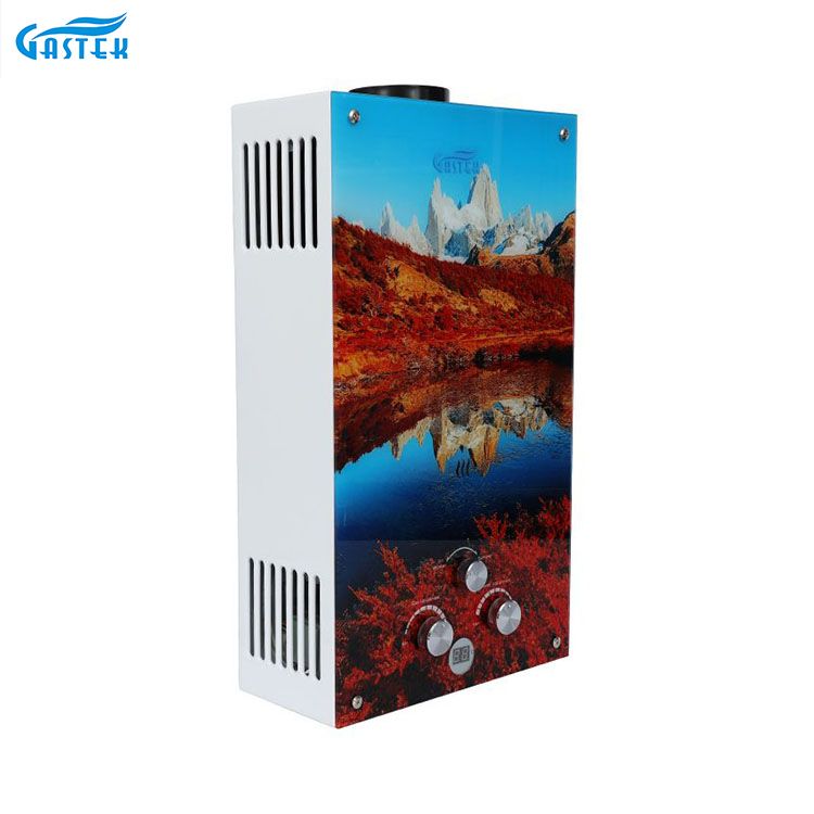 Haushaltsgerät 6L 10L 12L Rauchabzugstyp Wandmontierter, maßgeschneiderter, tankloser Instant-Gas-Geyser mit Glasscheibe zum Duschen und Baden